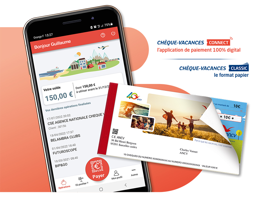 Le Chèque-Vacances – en format papier et digital – bénéficie en France à 11 millions de personnes, salariés et leur famille. Il est attribué aux salariés par les CSE et les employeurs selon des critères sociaux. Il peut être utilisé auprès de nombreux acteurs du tourisme et des loisirs, comme des moyens de transport (SNCF, compagnies aériennes, etc.), des hébergeurs (hôtels ou résidences de tourisme, etc.), ou pour régler des activités de loisirs, comme une sortie en kayak ou l’entrée d’un musée. Le CSE – ou l’entreprise – offrent complètement ou abondent à ces Chèques-Vacances ; ils payent une commission minime de 1% sur le montant facial du Chèque-Vacances, ce qui est peu, comparativement aux cartes vacances actuellement présentes sur le marché. Les 128 600 professionnels du tourisme partenaires de l’ANCV, payent une commission à l’ANCV de l’ordre de 2,5% sur le montant dépensé par la famille. Pour le salarié, tout est gratuit et transparent.