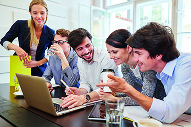 Group of young business people with computer training and discussing