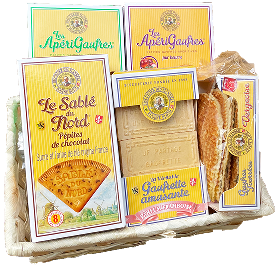 Pour les CSE, le Comptoir des Flandres confectionne des paniers gourmands, en mixant les produits sucrés et salés comme les Apérigaufres fines, les Apérigaufres fourrées et les Apérisablés et en ajoutant les boissons de votre choix.