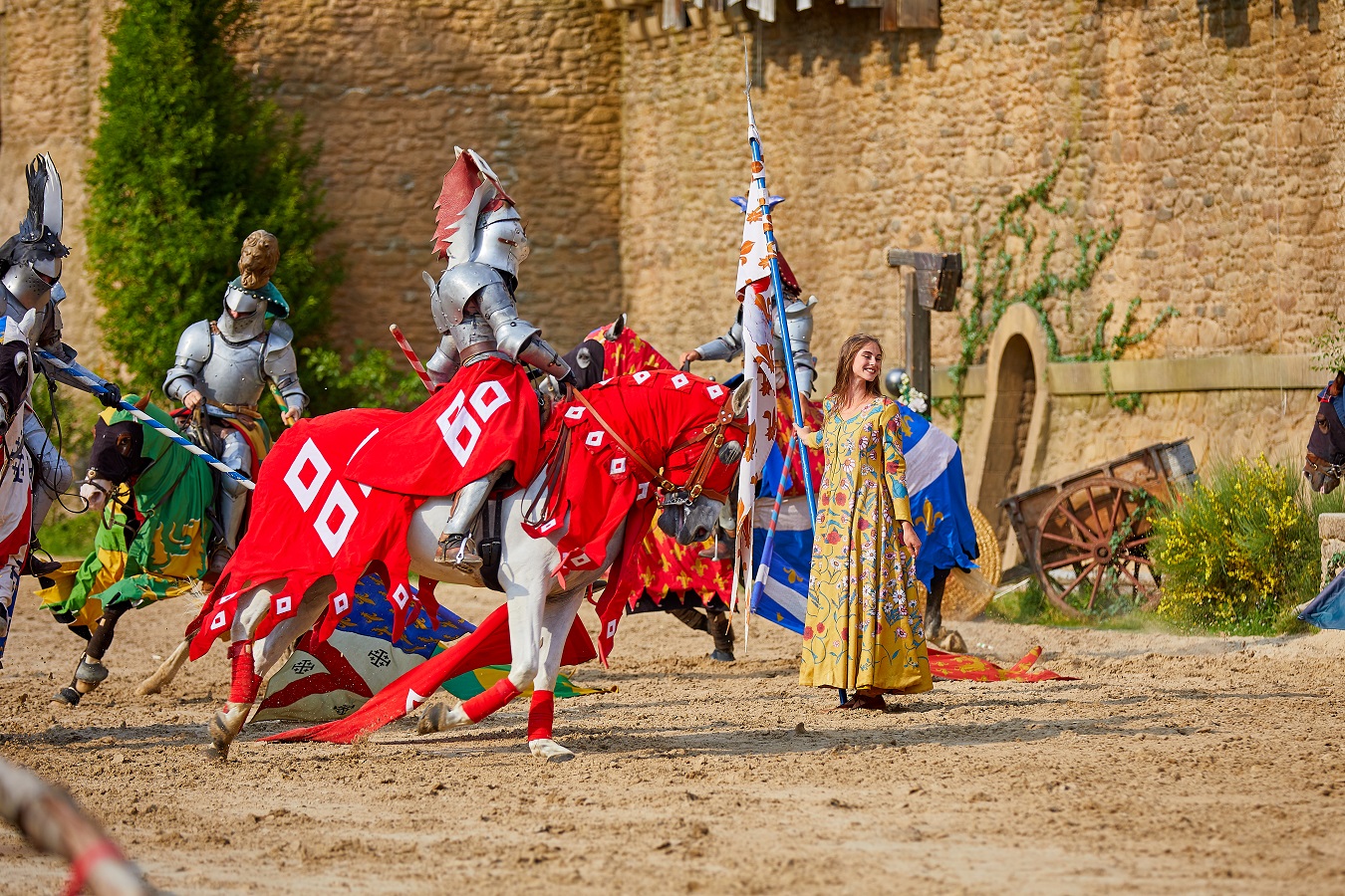 Ce monde merveilleux se prolonge dans la forêt où vous découvrirez La Clairière aux Daims, La Vallée Fleurie, La Roseraie, La Prairie des Animaux et Les Jets Sauteurs. Quatre villages vous accueillent : la Cité Médiévale, le Village XV IIIème, le Bourg 1900 et le Fort de l’An Mil.
