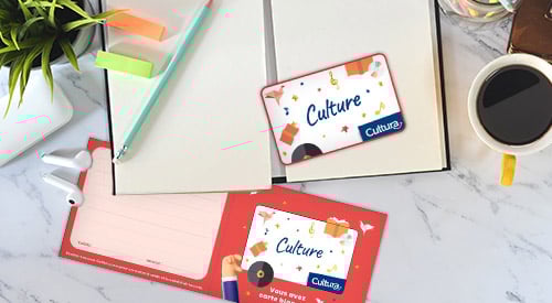 Cartes cadeaux physiques ou dématérialisées : d’un montant libre entre 10 € et 150 €, valables 12 mois, utilisables en une ou plusieurs fois, en magasin ou sur le site cultura.com.