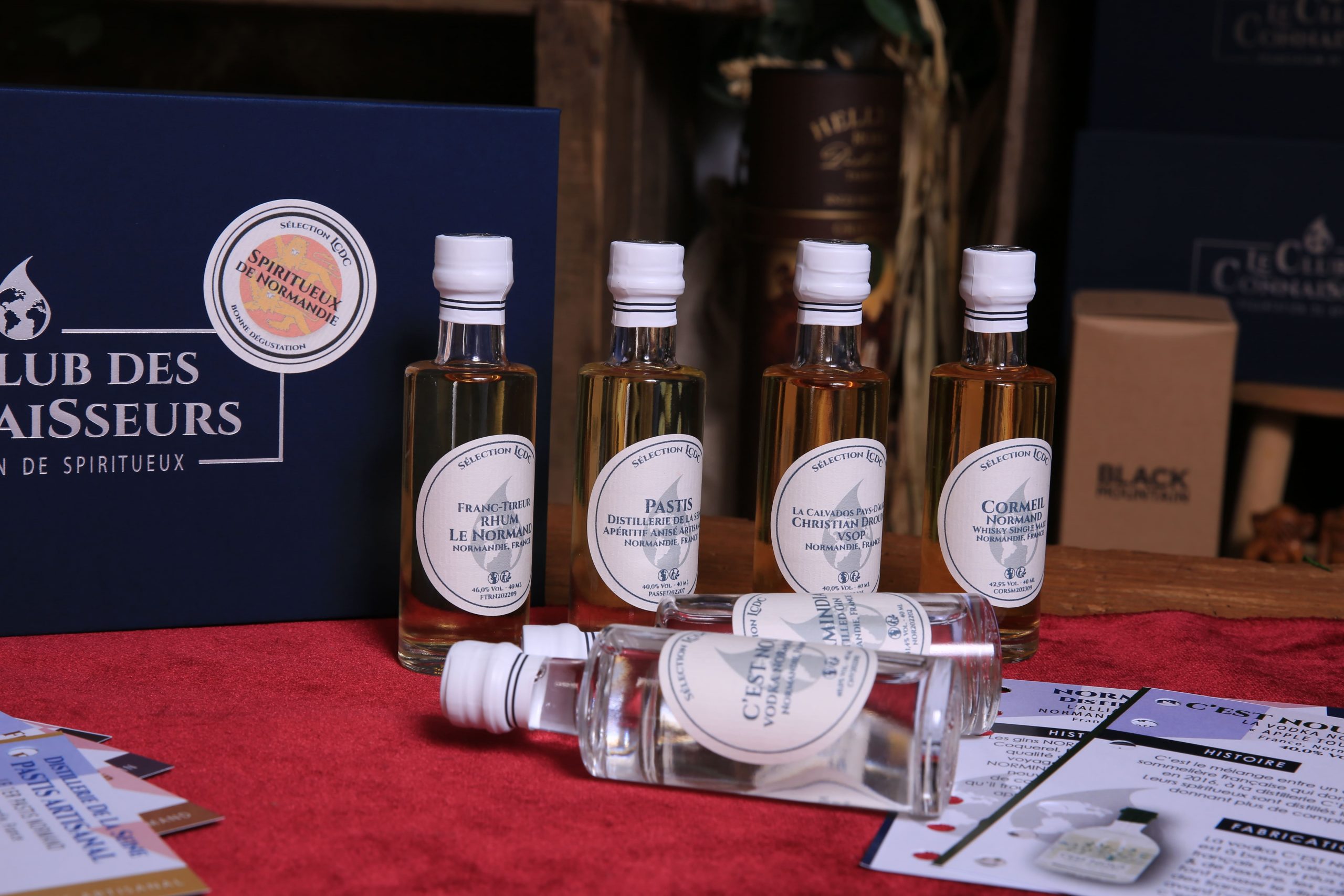 Coffrets dégustation à thème (whisky, rhum, gin, spiritueux normands…)