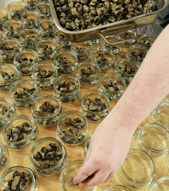 - Escargots en bocaux, agrémentés de persillade ou d’ingrédients variés : ail des ours, ortie, piment d’Espelette, ail noir de Billom.
