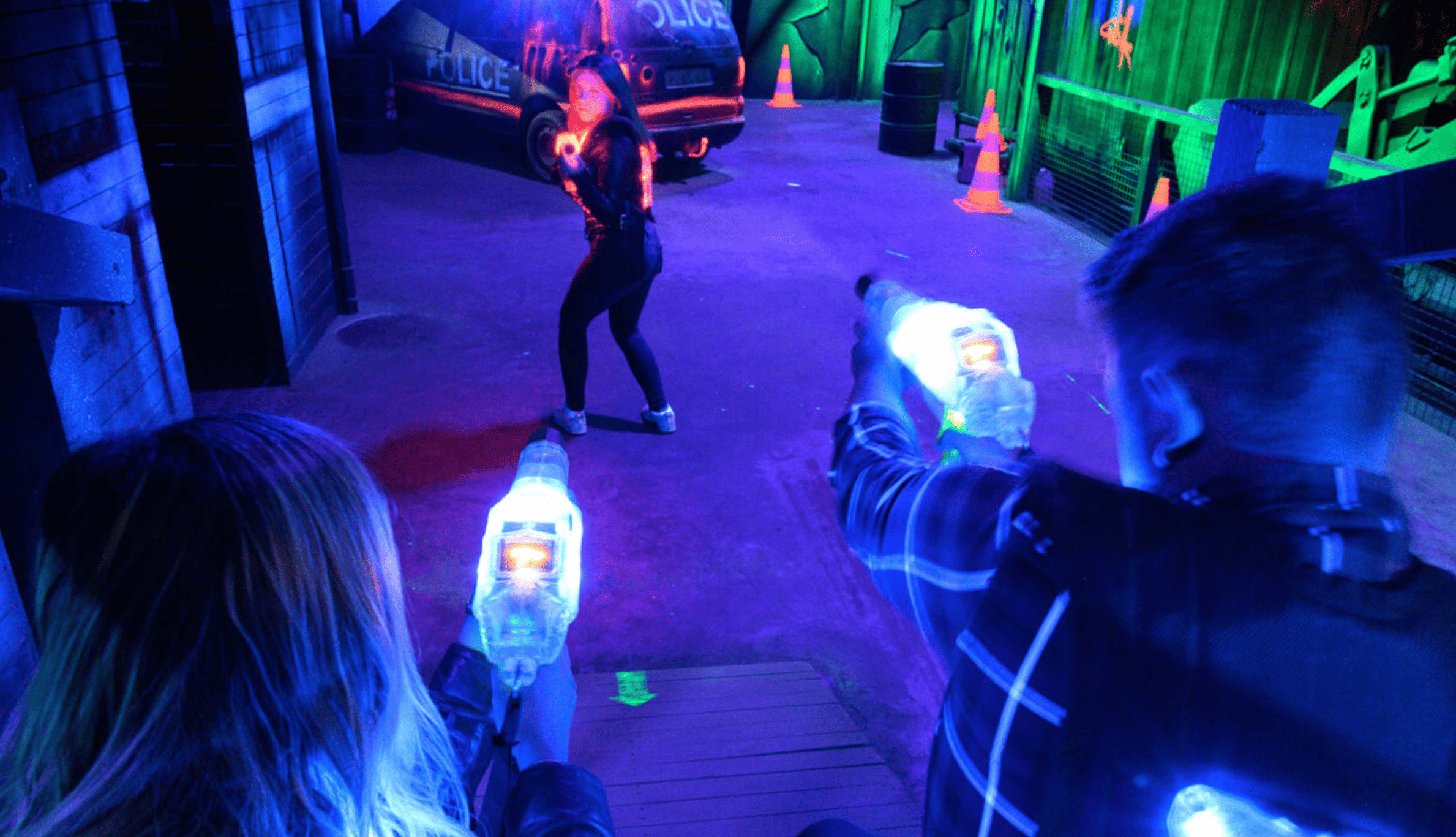 Lazzer City – Le plus grand laser game de France, installé dans une arène de 1 600 m² au décor urbain futuriste.