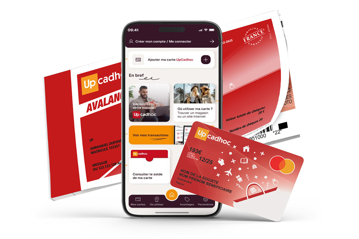 - UpCadhoc (Carte et chèque) : Le cadeau idéal et exonéré de cotisations sociales, disponible en carte ou chèque, à utiliser en magasin ou en ligne.